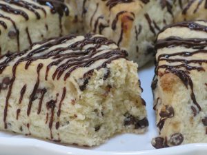 So, I went home and re-created what was so delicious at that bakery, but decided to do it using some cake mix and doubled the size of the muffin. This result was even better, sucking in my husband and daughter to the deliciousness of each bite. In fact, this is the only muffin our daughter requests that I pull out of the freezer for her to enjoy on the weekends. Hubby goes back and forth between this one and the double chocolate, just for a little change up. Our son loves all muffins, but especially the ones that have any kind of fruit.